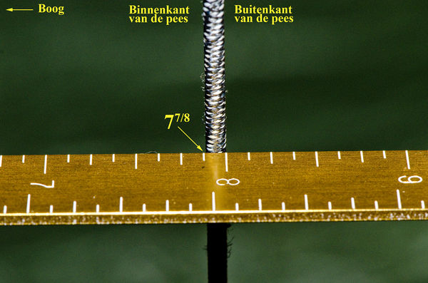 - Op de foto hieronder lees je de peeshoogte af als 7" en 7/8-ste van een inch aan de binnenkant van de pees...