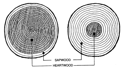 - hout van de jonge boom, en ook jong hout van de oude boom
