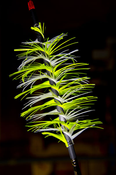 • Breng nog een druppeltje lijm onderaan en bovenaan op de veren aan, analoog zoals je bij gewone veren doet. Controleer of de veren goed vast zitten en zich niet los kunnen trekken. Indien nodig, gebruik super-glue om het begin en einde van de veer vast te zetten. Dit mag niet los komen. Vermijd om een dikke bult aan tape te gebruiken.