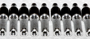 Breng de punten aan in de inserts. De punten zijn meestal bedekt door een olie afkomstig van het fabrikageprocess. Let hier voor op en zorg dat je de inserts steeds met bv. je linker hand neemt en de punten steeds met je rechterhand, dit om te verwijden dat er extra vet op de inserts komt. De inserts dienen altijd goed ontvet te worden. Dit is belangrijk opdat de lijm goed zou kunnen hechten. Bevochtig een doek (bv keukenrol) met een voldoende hoeveelheid aceton en wrijf de inserts proper totdat er geen vuil meer af komt. Leg de inserts op een zuivere plaats (bv keulenrol) en laat ze drogen indien nodig. Raak de inserts niet meer met blote handen aan. Neem ze bij de punt vast zodat er zeker geen vet meer op komt.