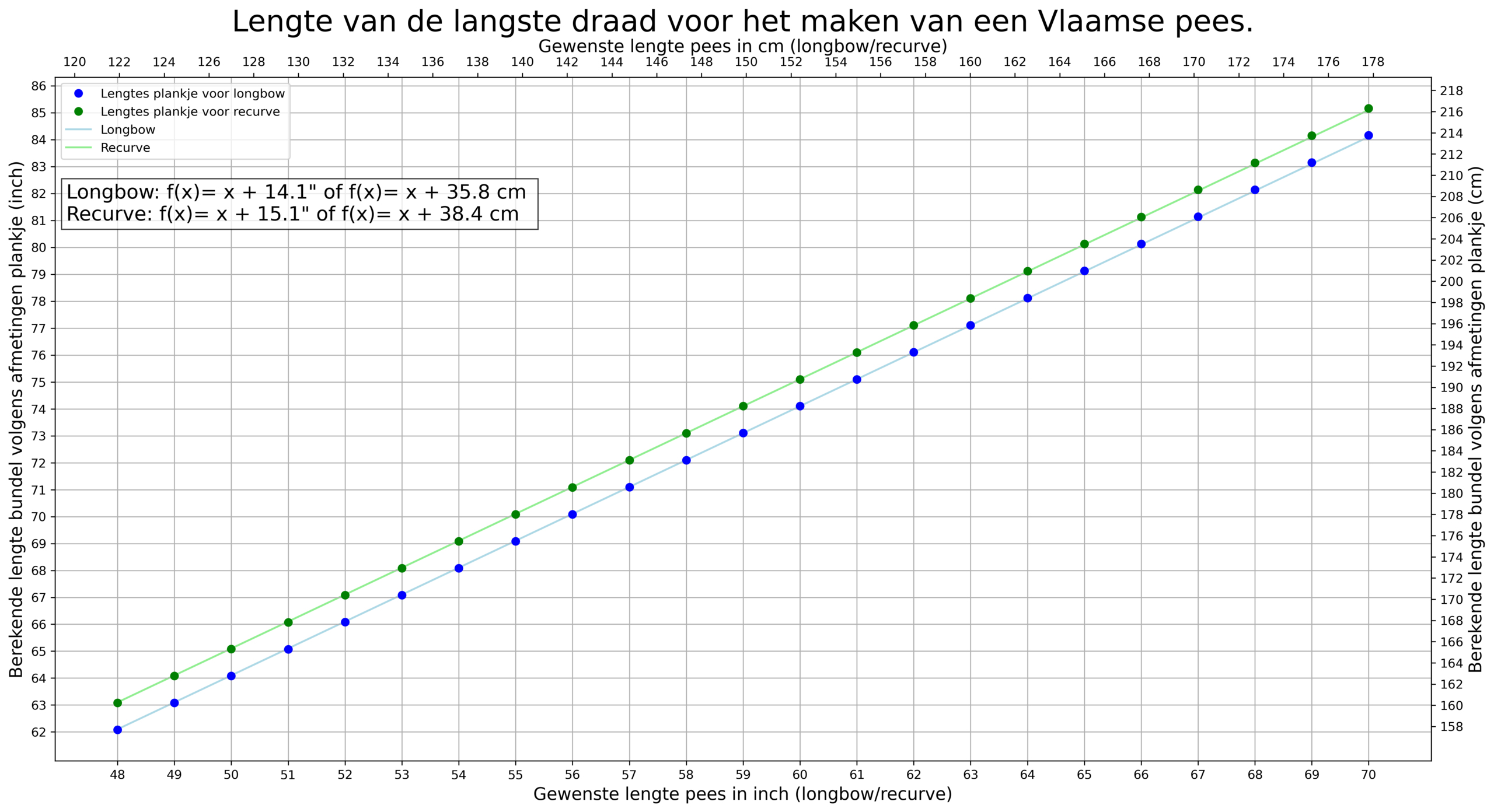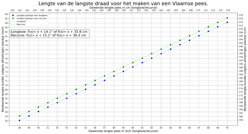 De lengte van de langste draad van een Vlaamse pees in relatie tot de gewenste pees lengte.